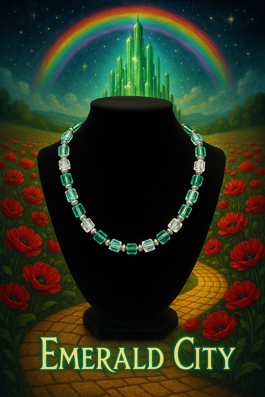Step into a world of elegance with the Emerald City Necklace. This stunning crystal necklace features a vibrant emerald crystals, adding a touch of luxury to any outfit. Expertly crafted with a rich history, this piece is sure to become a timeless addition to your jewelry collection.