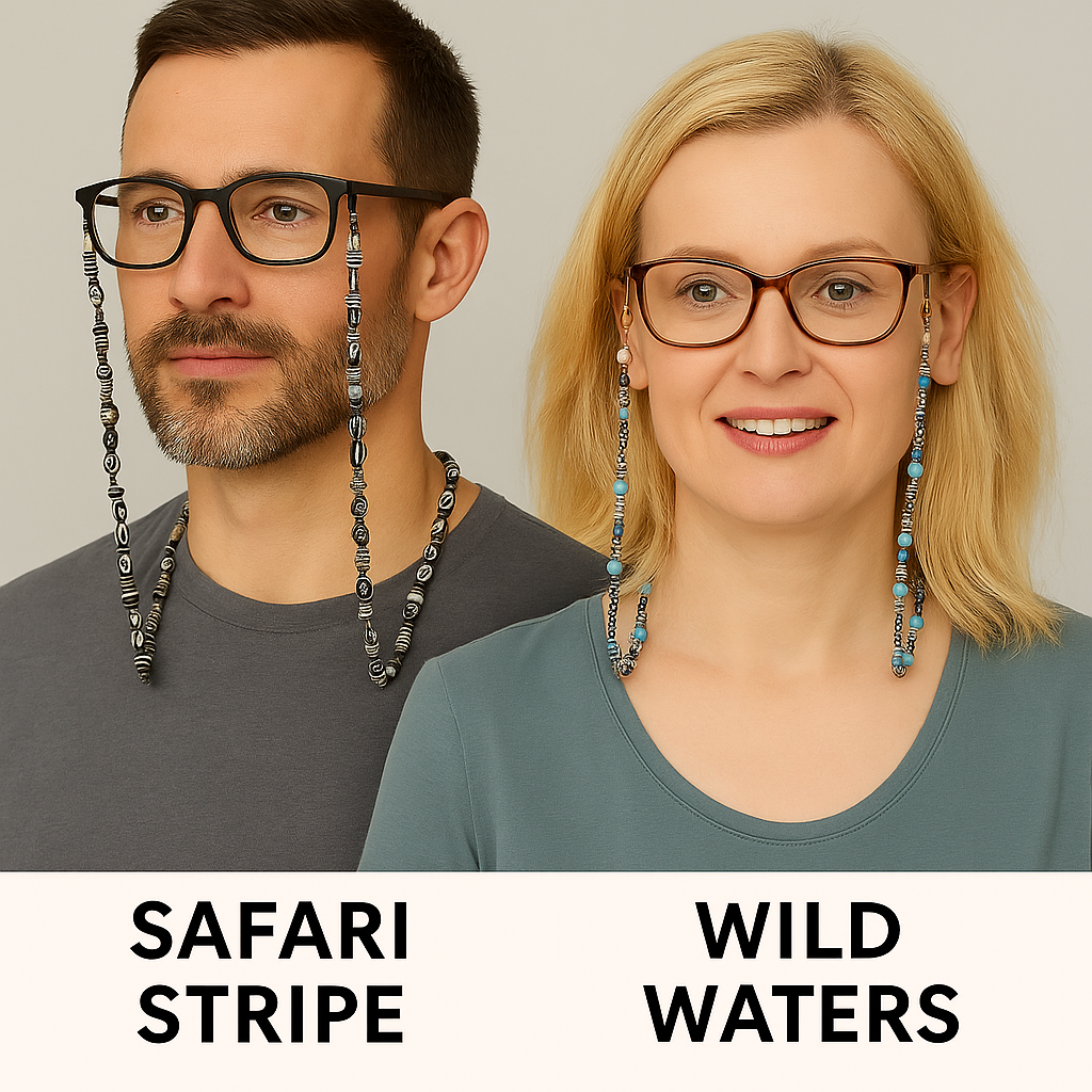 Each catcher comes with secure huggies to hold your glasses in place, giving you both function and fashion in one accessory. The unique bead combination captures the calm beauty of drifting ice and the bold edge of modern style—perfect for anyone who wants their glasses to stand out as much as they do.